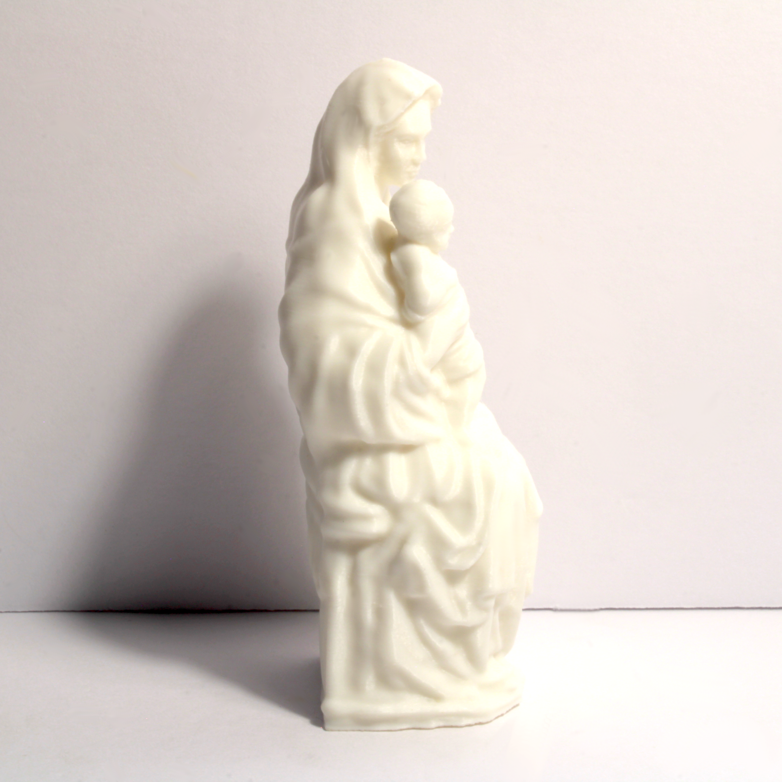 Made from PLA, this sculpture of The Virgin and the Child is based on the work of Jacopo della Quercia (c. 1374–1438), a major figure of the Italian Renaissance and a precursor to Michelangelo. A contemporary of Brunelleschi, Ghiberti, and Donatello, della Quercia’s sculptural style bridged Gothic and early Renaissance ideals with expressive form and emotional depth. Its size makes it easy to display, and precision 3‑D printing delivers crisp detailing and lasting quality.